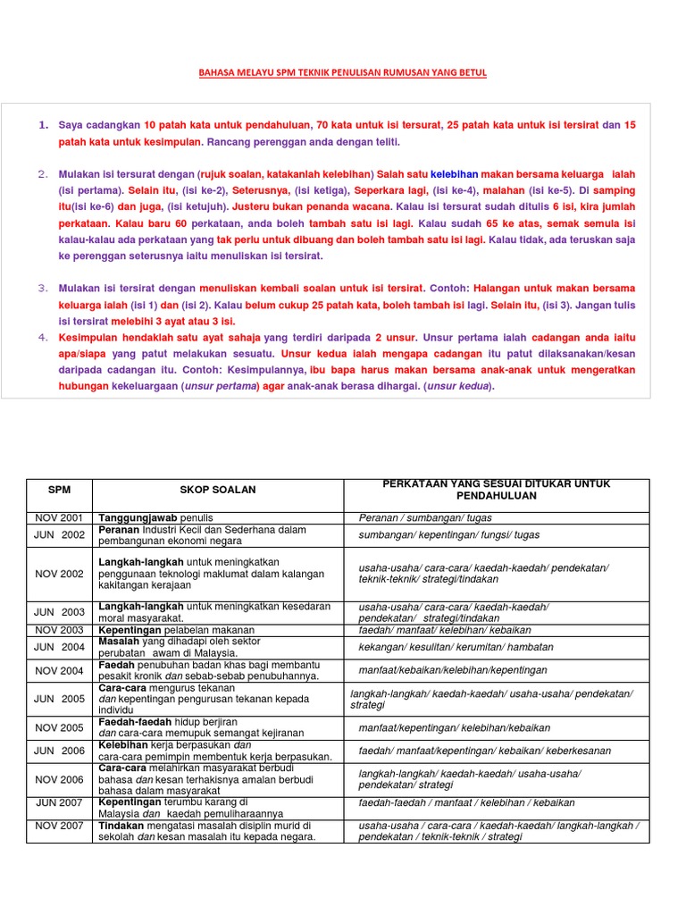 Bahasa Melayu Spm Teknik Penulisan Rumusan Yang Be Pdf